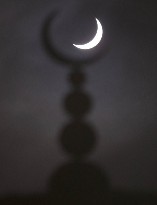 Nhật thực bán phần trên giáo đường Hồi giáo ở Oxford, miền trung nước Anh.