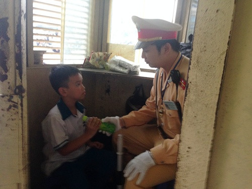 Thấy tinh thần cháu bé có vẻ hoảng loạn và sợ hãi, Thượng úy Thắng cùng Thiếu úy Đăng đưa cháu bé vào bốt CSGT, hỏi han thông tin về bố mẹ cùng địa chỉ nhà, tuy nhiên cháu bé chỉ một mực kêu đói và không thể nhớ ra bất cứ điều gì. Thấy vậy, hai chiến sĩ CSGT đã cho cháu ăn bánh và uống nước.