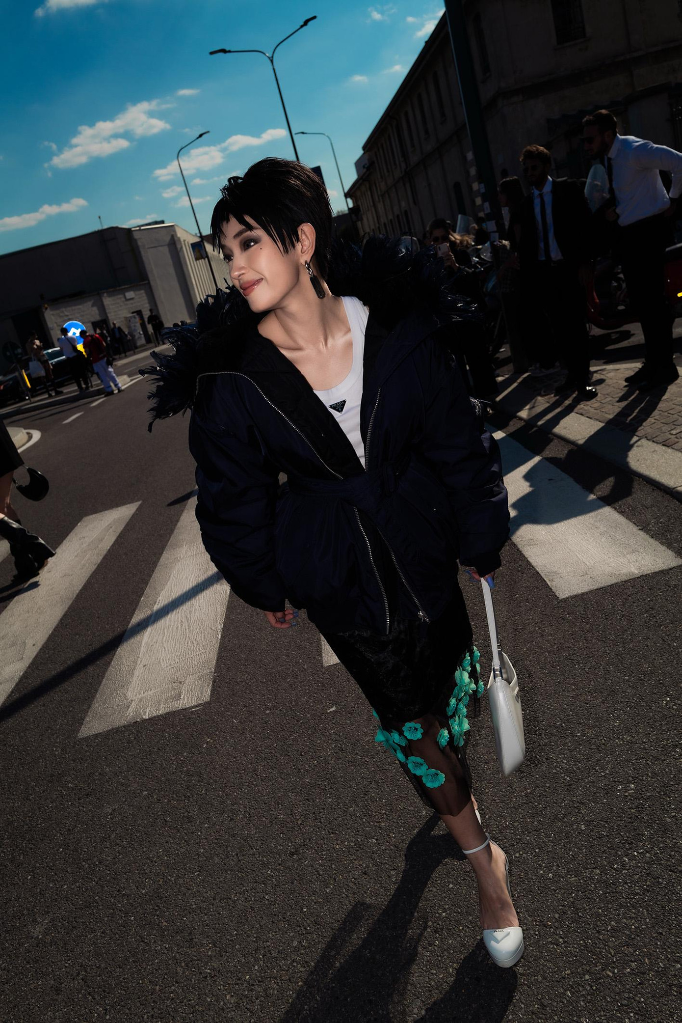 Khoác trên mình những thiết kế từ BST Thu Đông 2022 của Prada, cùng mái tóc tém cá tính, Châu Bùi đã tái hiện lại tinh thần mà bộ đôi Giám đốc sáng tạo Raf Simons và Miuccia Prada truyền tải trong BST này: Hình ảnh người phụ nữ hiện đại, vô cùng duyên dáng mà cũng vô cùng độc lập.