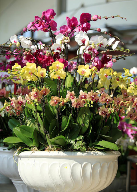Còn đây là chậu lan hồ điệp có giá 24 triệu đồng với nhiều tầng hoa mầu sắc khác nhau.