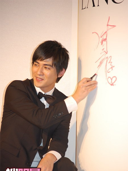 Vừa qua, Châu Du Dân đã có mặt tại buổi lễ giới thiệu sản phẩm son môi mới của hãng Lancome.