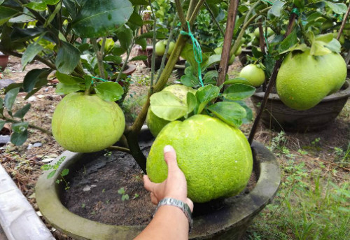 Cũng góp mặt vào thị trường kiểng trái cây chưng tết có giá tiền triệu chính là bưởi cảnh. Bưởi cảnh được các nhà vườn từ Bắc đến Nam cung ứng, đơn cử như bưởi cảnh Văn Giang (Hưng Yên) hay bưởi cảnh Diên Khánh (Khánh Hòa). Nếu như các vườn bưởi cảnh Văn Giang chủ yếu cung ứng các chậu bưởi cảnh có gốc to, được tạo thế như bonsai cổ thụ thì các vườn bưởi cảnh ở Khánh Hòa cũng được chăm sóc tỉ mỉ không kém với 2 năm trồng trong chậu để cho ra quả, với số lượng từ 5 đến hơn 10 quả tùy cây. Giá của các chậu bưởi cảnh ở Diên Khánh dao động từ 2,5 triệu đến 3 triệu đồng. Tuy nhiên, ngay từ cuối tháng 12, có vườn đã thông báo bán xong hết toàn bộ hàng Tết Đinh Dậu cho thương lái.