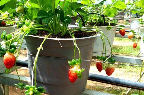 Có giá "mềm" hơn cả trong dòng trái cây vô chậu chưng Tết phải kể đến dâu tây Đà Lạt. Theo nhà vườn, dâu tây vô chậu là dâu giống New Zealand chịu nhiệt ở mọi khí hậu. Do đó, sau khi chưng Tết và ăn hết quả thì người mua có thể tiếp tục chăm sóc để cây tiếp tục cho ra trái quanh năm.