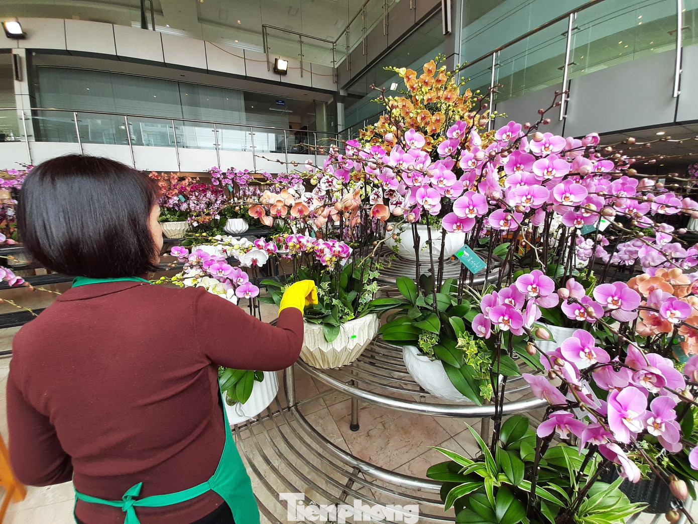 Theo tiết lộ của chủ cửa hàng, chậu lan hồ điệp này được 5 thợ kỹ thuật làm trong vòng 6-8 tiếng. Cả chậu có 600 cành hoa, cao hơn 2m. Toàn bộ số hoa là được vận chuyển từ Đà Lạt ra Hà Nội
