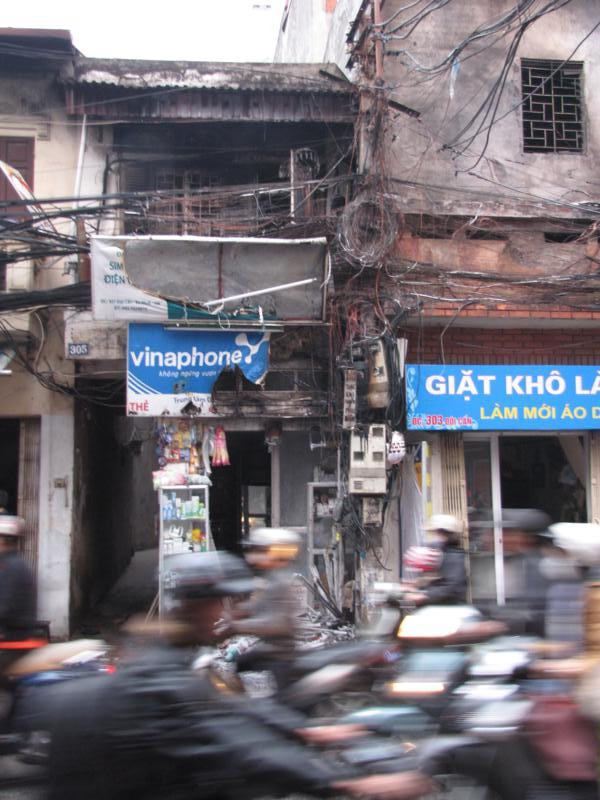 Anh Vũ Đình Luyến (38 tuổi) – chủ ngôi nhà 305 cho biết, trước khi xảy ra cháy chỉ có vợ anh là chị Nguyễn Thị Thu Hường (Sn 1979) cùng con trai là Vũ Tiến Đạt ở nhà. Bất ngờ thấy lửa cháy từ cột điện, chị Hường vội bế con chạy ra khỏi ngôi nhà thoát nạn. Quan sát tại hiện trường, ngôi nhà của anh Luyến có tổng diện tích khoảng 15m2, nhưng bề ngang chỉ rộng 2m2. Cột điện trước nhà chằng chịt dây và hộp điện. Ngôi nhà 303 cũng có diện tích tương tự. Rất may, vụ hỏa hoạn không gây thiệt hại về người nhưng đã thiêu rụi nhiều đồ đạc trong nhà như hệ thống điện, bóng đèn, mái trước nhà.