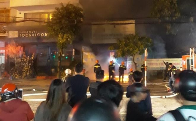 Thời điểm này ngọn lửa bùng phát lớn, lực lượng PCCC đã phá cửa đồng thời phun nước khống chế lửa rồi đưa nhiều đồ dùng thiết bị như cồn, bình ga, bình oxi ra phía ngoài.
