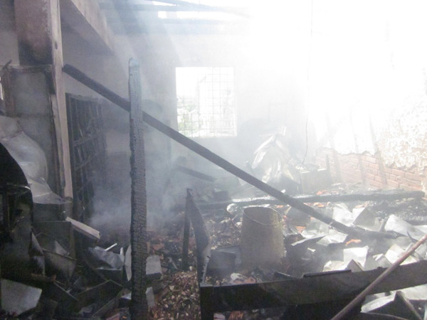 30 phút sau, ngọn lửa mới được khống chế, nhưng toàn bộ phần kho thuốc phụ ở tầng 2 bị thiêu rụi hoàn toàn.