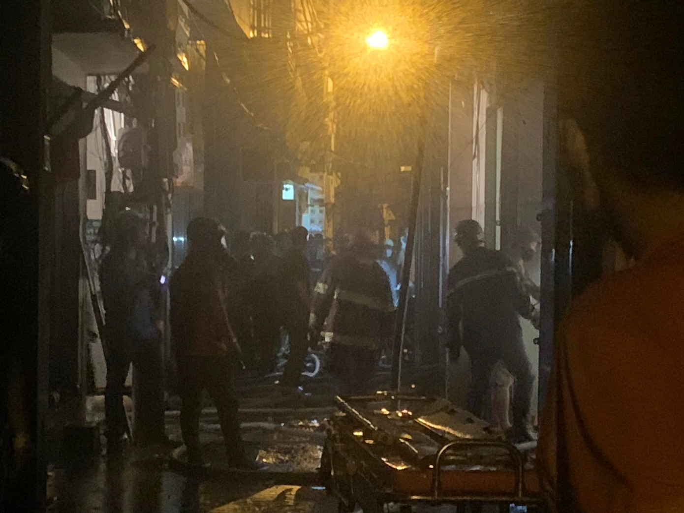 Xe chữa cháy chỉ có thể đỗ cách hiện trường 3-400m; lực lượng chức năng phải dẫn vòi rồng vào ngõ sâu để dập lửa.