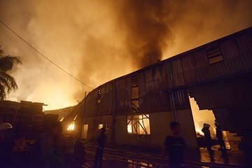 Đám cháy sau khi bùng phát tại kho chứa gỗ của công ty Woodsland đã lan sang một phần công ty sơn Nippon.
