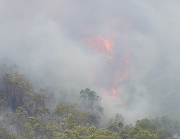 Đến 12 giờ trưa ngày 9/8, đám cháy dữ dội xảy ra trên núi Bà Hỏa giữa thành phố Quy Nhơn (tỉnh Bình Định) vẫn còn âm ỉ. Do gió thổi mạnh nên công tác chữa cháy gặp nhiều khó khăn.