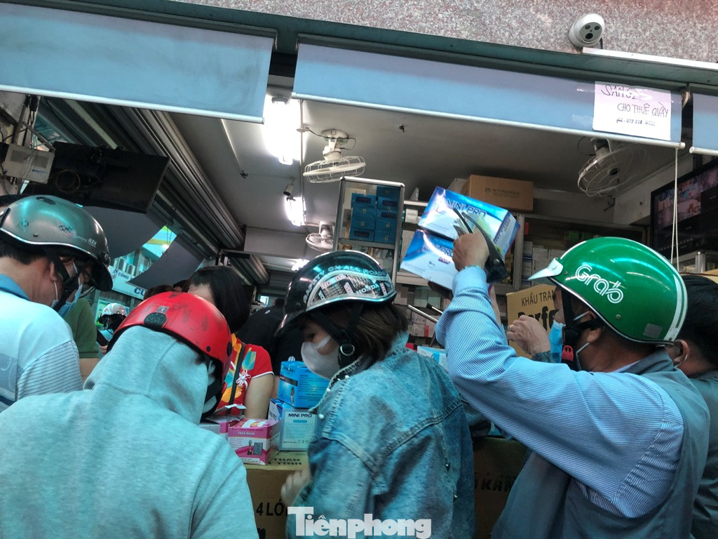 Theo nhân viên cửa tiệm, mọi hôm bán 1 thùng khẩu trang y tế (50 hộp) cà mấy tháng chưa hết, còn giờ 1 ngày bán 4-5 thùng mà còn không đủ cho khách. "Bây giờ ra chợ thuốc mua sỉ giá đã là 150.000 đồng/hộp, bên em bán chỉ 80.000 đồng là do hàng mua trước đây còn tồn. Bây giờ hết hàng tồn rồi thì phải bán giá cao hơn do đầu giá cả đắt đỏ".