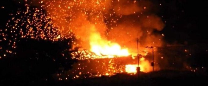 Cả khu vực bị nhấn chìm trong ngọn lửa. Vụ cháy nổ thắp sáng khắp một vùng.