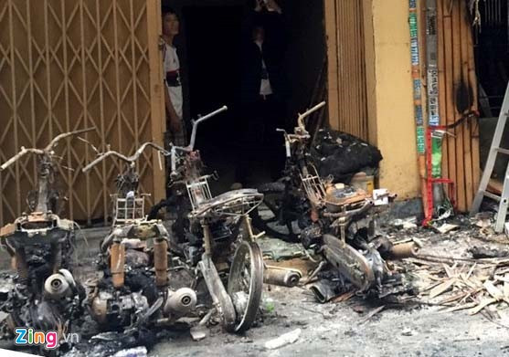 Toàn bộ mặt tiền ám màu đen xì, nhiều vật dụng biến thành tro và sắt vụn. Hai chiếc xe máy cháy rụi trơ khung sắt. Một số đồ đạt trong gia đình ám khỏi hoặc bị lửa nung chảy. Những cánh quat, tivi, tủ quần áo, bàn ghế,... bị sức nóng làm chảy nhão. Tấm biển mang tên Văn Cafe cháy đen.