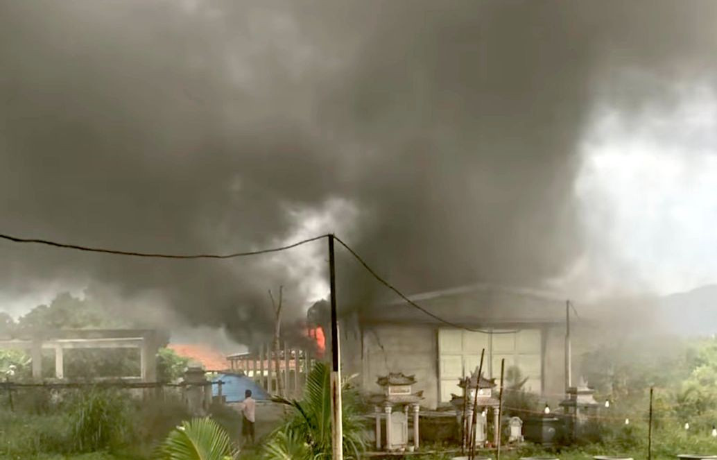 Theo thông tin ban đầu, vụ cháy xảy ra khoảng 5 giờ cùng ngày. Ngọn lửa bùng phát dữ dội tại kho lúa giống, cột khói bốc cao hàng chục mét.