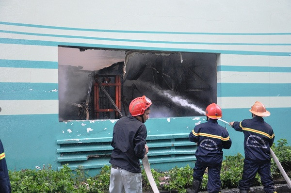 Hàng chục bảo vệ cùng công nhân sử dụng phương tiện chữa cháy tại chỗ để dập lửa nhưng bất thành.
