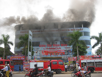 TPO - Khoảng 11 giờ hôm nay, 2 - 9, tại siêu thị điện máy CK (tại phường Quán Bàu, TP Vinh, Nghệ An) xảy ra cháy lớn. Một số người chứng kiến cho biết, lửa từ tầng hai của tòa nhà lan lên tầng ba, tầng bốn, thiêu rụi nhiều tài sản.