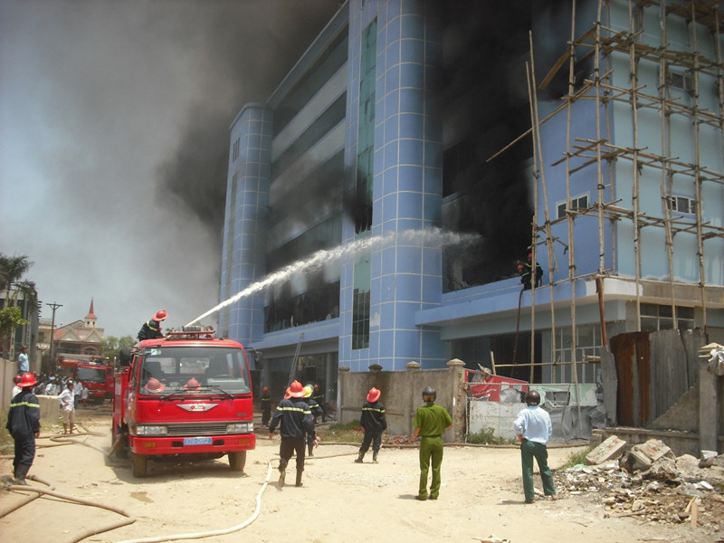 Ngay sau khi nhận được tin báo, lực lượng phòng cháy chữa cháy - Công an tỉnh Nghệ An huy động 14 xe chữa cháy cùng hơn 100 chiến sĩ đến hiện trường dập lửa. Tuy nhiên, do tòa nhà quá kín nên việc tiếp cận đám cháy gặp nhiều khó khăn.