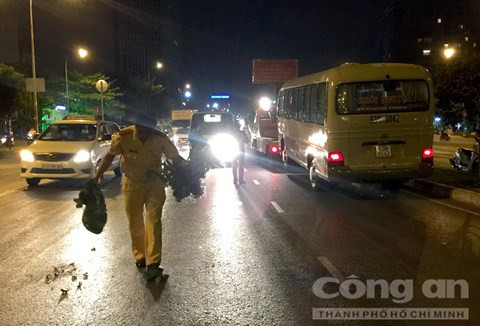 Nhận được tin báo, CSGT Q.Bình Thạnh nhanh chóng có mặt khám nghiệm hiện trường và xử lý vụ việc.