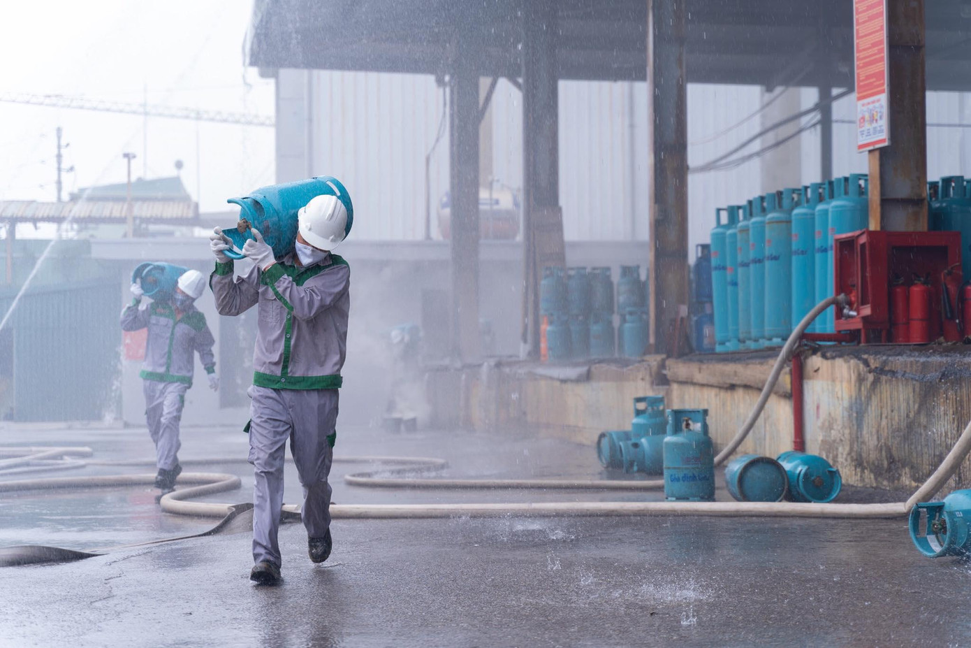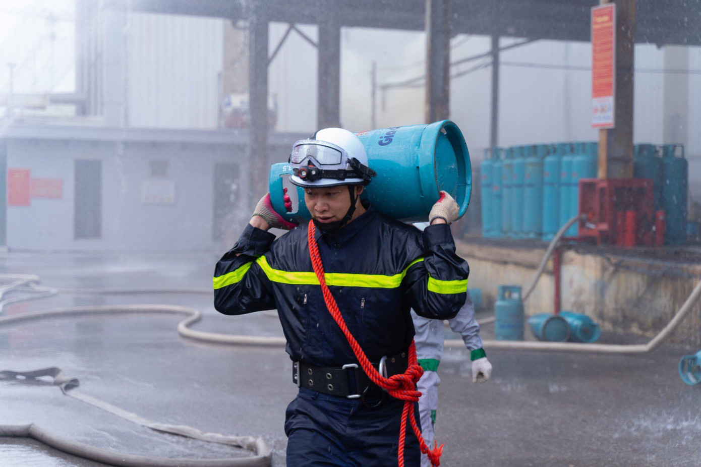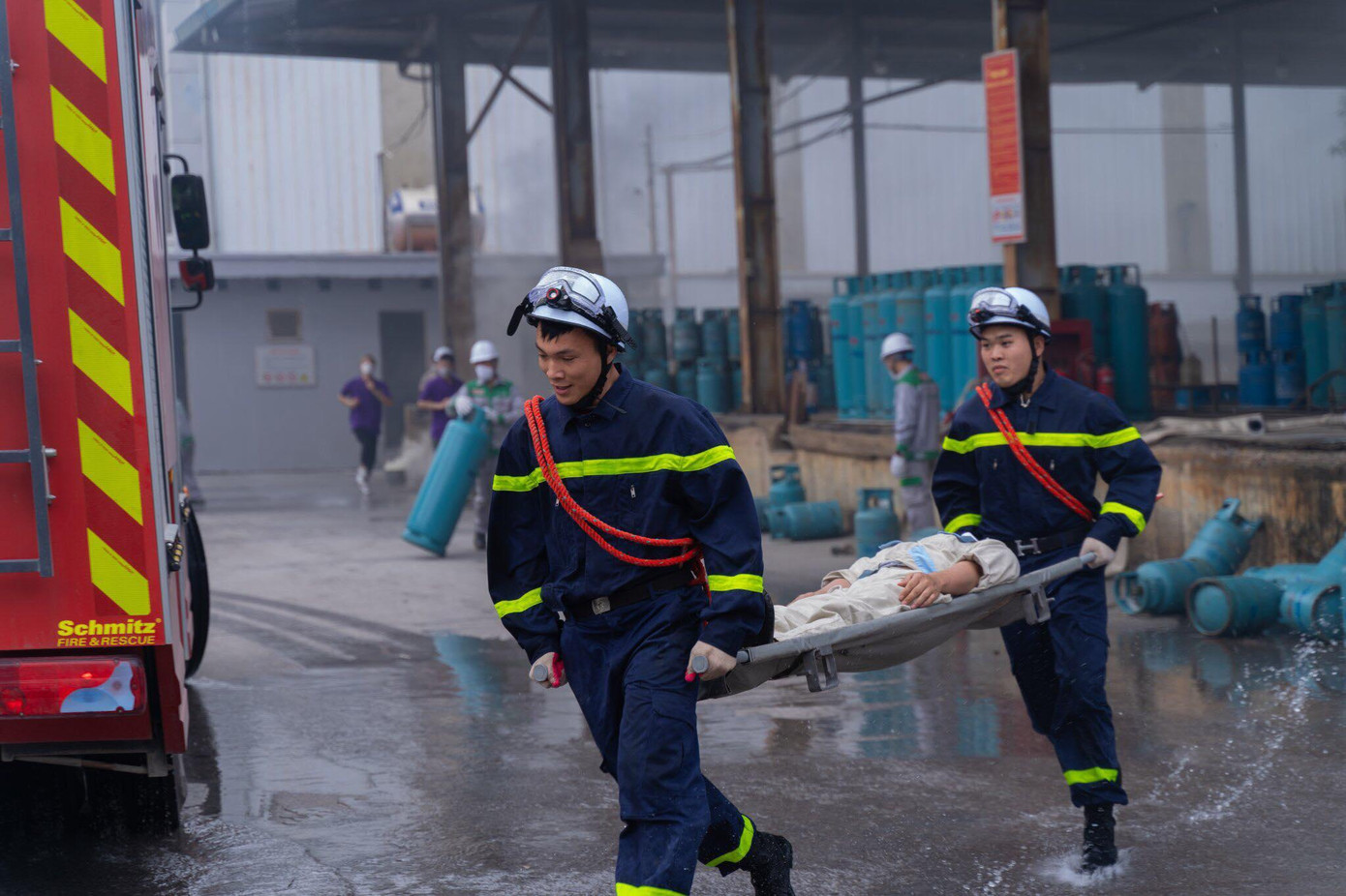 Các lực lượng nhanh chóng triển khai chữa cháy và cứu nạn, cứu hộ theo từng tổ gồm: Tổ kỹ thuật, tổ chữa cháy, tổ hướng dẫn thoát nạn, tổ hậu cần, tổ y tế. Riêng lưcj lượng ở Công ty Cổ phần An pha, sau khi phát hiện cháy, song song với gọi báo các đơn vị chữa cháy, kỹ thuật lập tức cắt điện, đóng van dẫn gas từ bồn gas vào hệ thống sàn nạp.