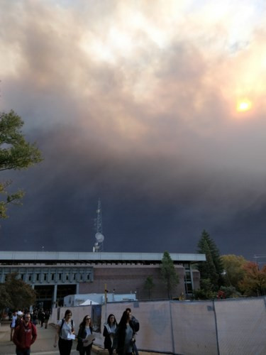 Mạng xã hội Mỹ cũng ngập tràn những hình ảnh như ngày tận thế vì bầu trời bao phủ khói đen và đường chân trời đỏ rực ánh lửa. (Ảnh: Twitter)