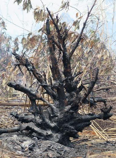 Đây là khu vực tạm cấp cho 52 hộ dân, mỗi hộ 1,5 ha để trồng hoa màu và trồng rừng. Bà con U Minh gọi đây là Xóm Rẫy nhưng chỉ trồng dây thuốc cá là chủ yếu. Ông Châu Văn Hải vừa cầm vòi nước phun xuống lớp than bùn đang cháy ngầm, vừa thở dài: “Cháy lớp than bùn khó chữa lắm, toàn bộ dây thuốc cá đến ngày thu hoạch có nguy cơ cháy thành tro”.