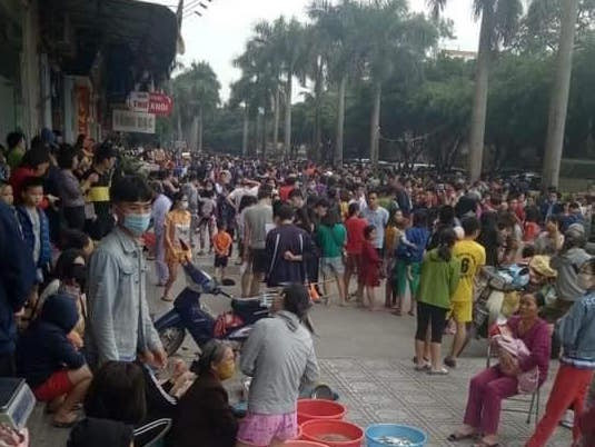 Hàng trăm cư dân tháo chạy ra ngoài tòa chung cư.