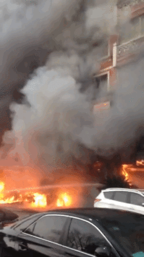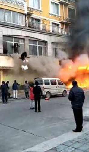 Hình ảnh trên trang Weibo của tờ Sina cho thấy cửa hàng massage bị nhấn chìm trong lửa khiến nhiều người buộc phải nhảy ra khỏi cửa sổ.
