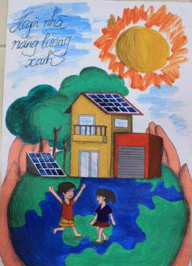 “Ngôi nhà năng lượng xanh” là ý tưởng của em Nguyễn Ngọc Anh (11 tuổi) để mang lại một cuộc sống xanh – sạch – đẹp cho cộng đồng. Với ngôi nhà đầy sáng tạo này, các thiết bị trong gia đình sẽ sử dụng năng lượng tự nhiên để hoạt động và Trái đất sẽ tươi đẹp hơn với sự bao phủ của màu xanh cây lá.