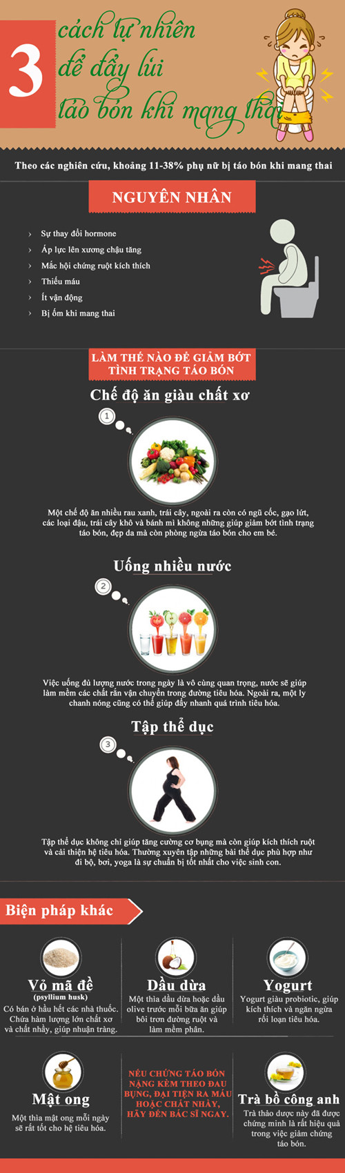 Khoảng 11-38% phụ nữ bị táo bón khi mang thai. Sử dụng một thìa mật ong mỗi ngày hay một thìa dầu dừa trước mỗi bữa ăn... giúp cải thiện hệ tiêu hóa hiệu quả.