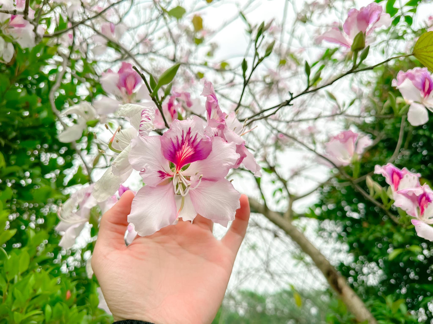 "Do hoa ban chỉ nở vào khoảng cuối tháng Hai, đầu tháng Ba nên mình và nhóm bạn tranh thủ đi chụp bộ ảnh để lưu lại những hình ảnh đẹp nhất của tuổi thanh xuân", Nguyễn Thảo Anh (Học viện Báo chí và Tuyên truyền) chia sẻ.