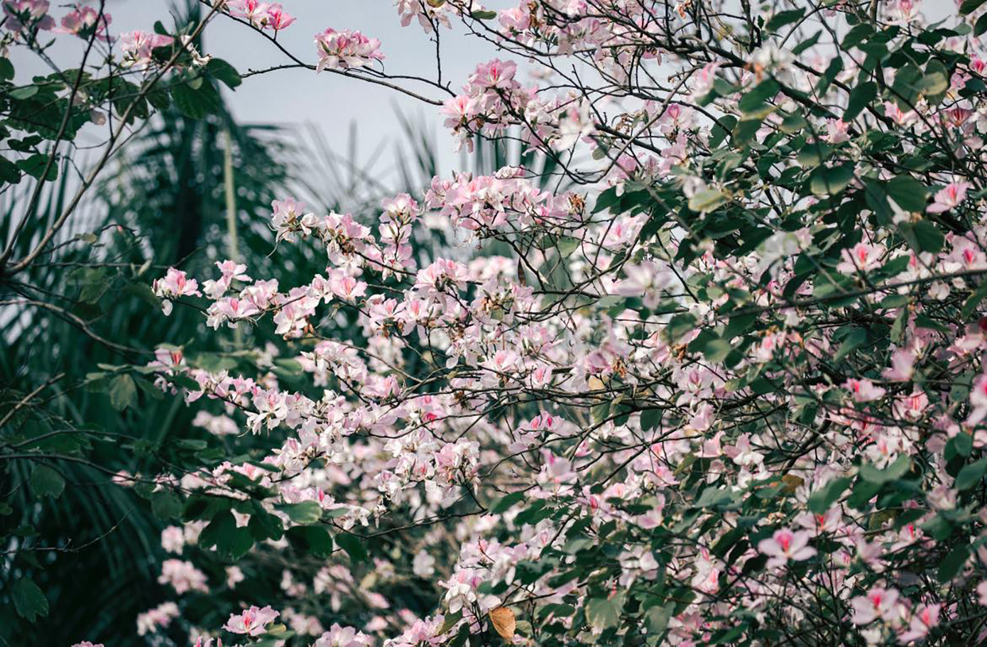 | Con đường hoa ban với nhiều góc chụp ảnh "cực chill" dành cho giới trẻ. Ảnh: BÙI NGỌC CÔNG |