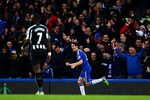 Suốt hiệp 1 của trận đấu, Chelsea không chiếm thế chủ động, thậm chí số lần dứt điểm của họ kém xa đối phương (3 so với 6). Thế nhưng sự hiệu quả thì lại vượt trội. Phút 43, từ pha dàn xếp đá phạt góc, Ivanovic có bóng và sộc thẳng vào vòng cấm Newcastle trước khi tung ra đường chuyền thuận lợi để Oscar dễ dàng đệm lòng mở tỷ số trận đấu.