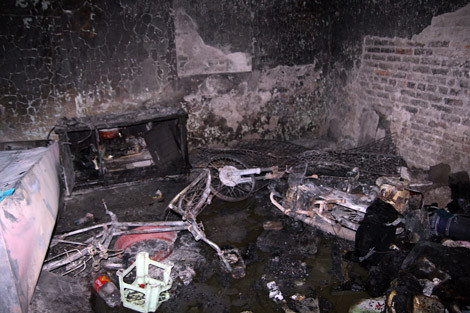 Hành hung các chị xong, Dũng xô đổ tủ lạnh, ti vi…, giật đổ xe máy Dream ra giữa nhà rồi dùng châm lửa đốt khiến cả tầng 1 ngôi nhà bùng cháy.
