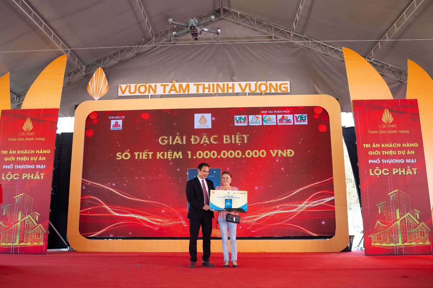 Khách hàng may mắn trúng sổ tiết kiệm trị giá lên đến 1 tỉ đồng trong chương trình khuyến mãi. Bên cạnh đó, tất cả các khách hàng còn được tặng ngay 1.000 USD, chiết khấu 10% tổng giá trị sản phẩm và trúng nhiều giải thưởng lớn như xe máy, tivi…