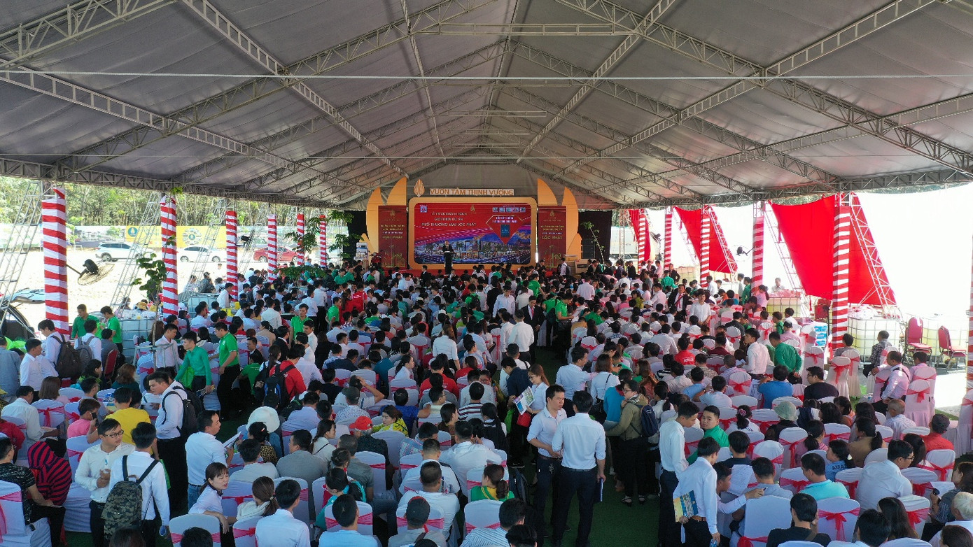 Quang cảnh lễ giới thiệu Phố thương mại Lộc Phát với hơn 500 khách hàng tham dự. Quá đông khách hàng trong khi sản phẩm hạn chế nên diễn ra cảnh nhiều khách hàng chen lấn giành suất giữ chỗ