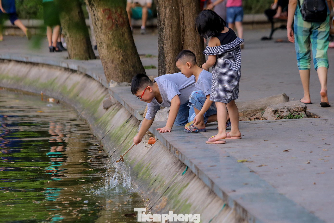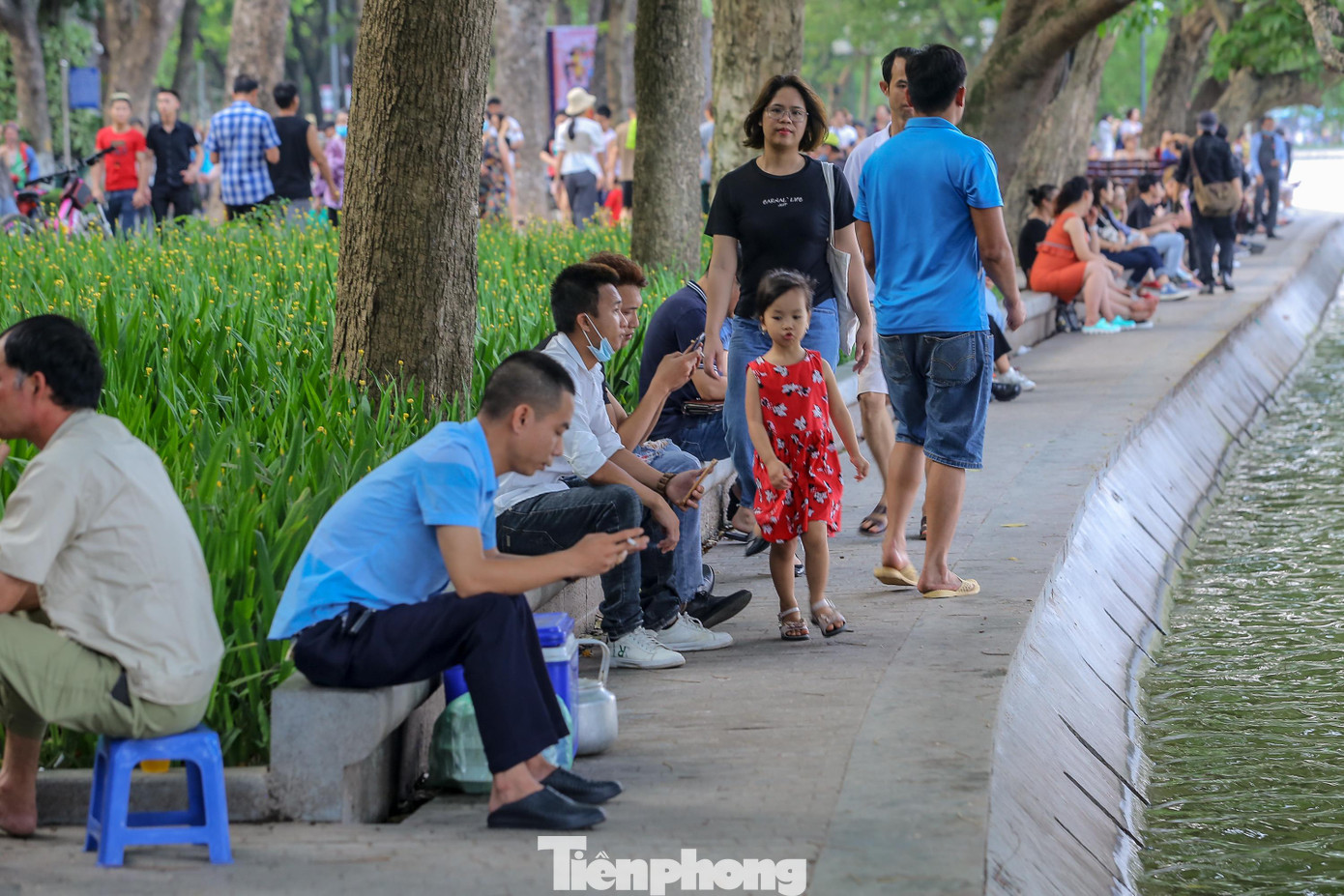 | Hóng gió bên bờ kè xung quanh Hồ Gươm. |