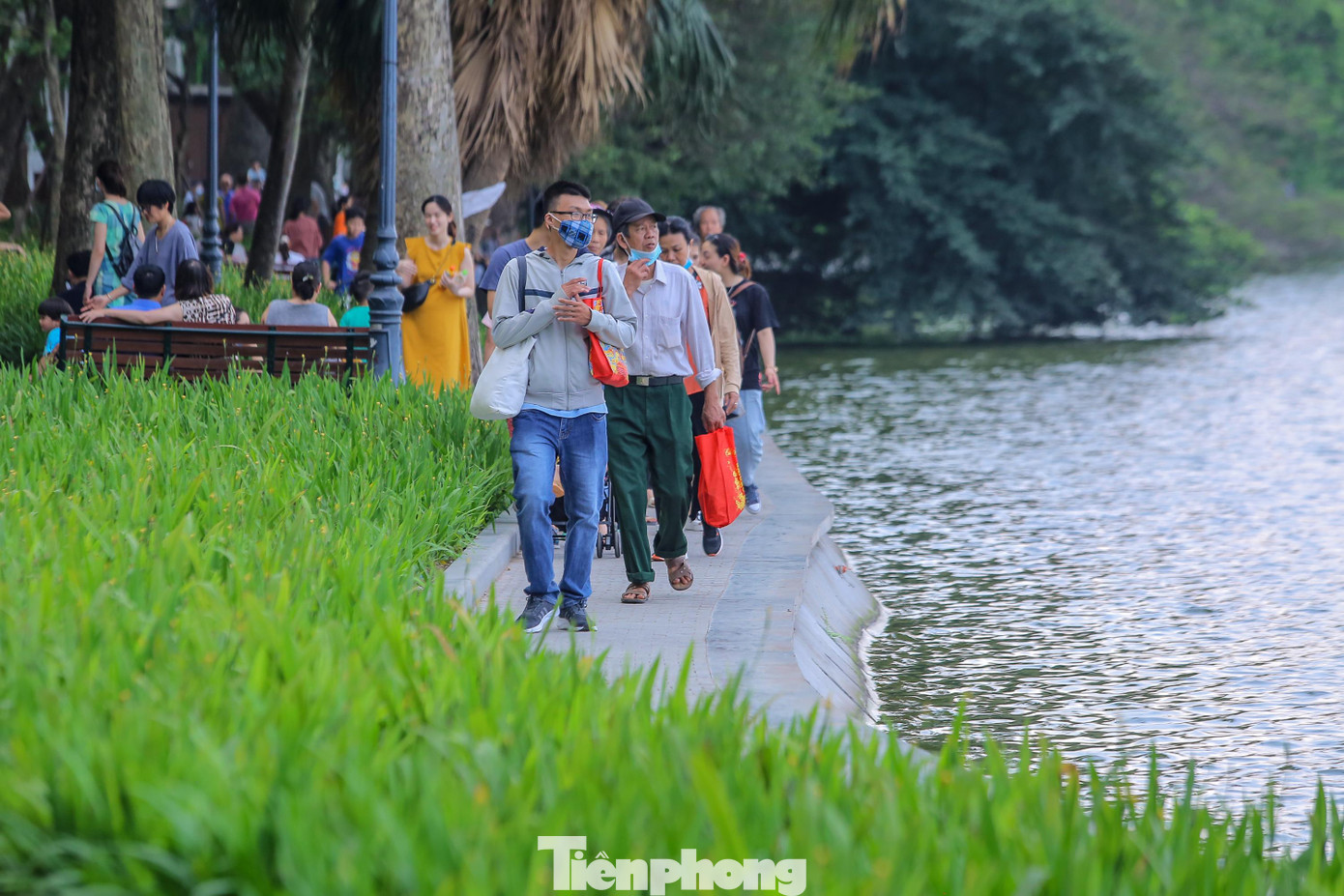| Càng về chiều tối, lượng người đổ lên hồ Hoàn Kiếm (quận Hoàn Kiếm, Hà Nội) ngày một đông. |
