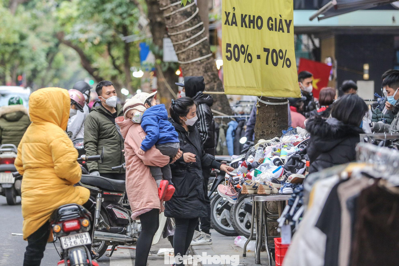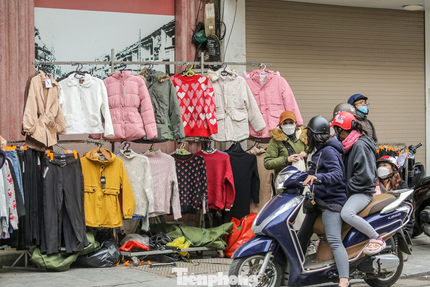 | Trên phố Hàng Ngang, Hàng Đào, tiểu thương mang đồ ra vỉa hè bày bán. |