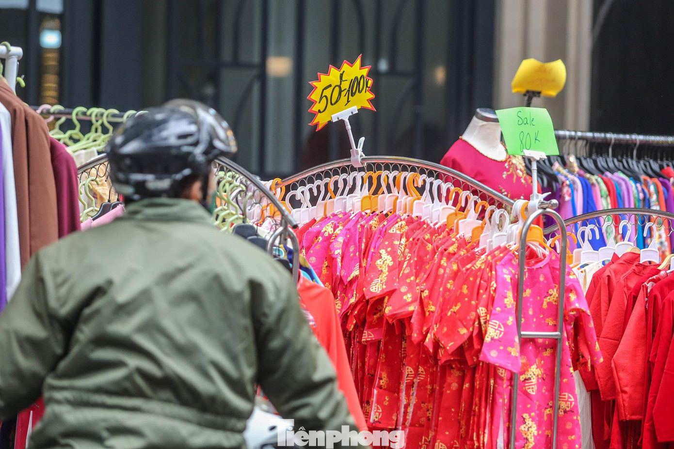 | Ghi nhận của PV tại phố Hàng Bông (quận Hoàn Kiếm) sáng nay, hàng chục sạp quần áo bày bán trên vỉa hè, treo biển "xả hàng đồng giá", thu hút khá đông người. |