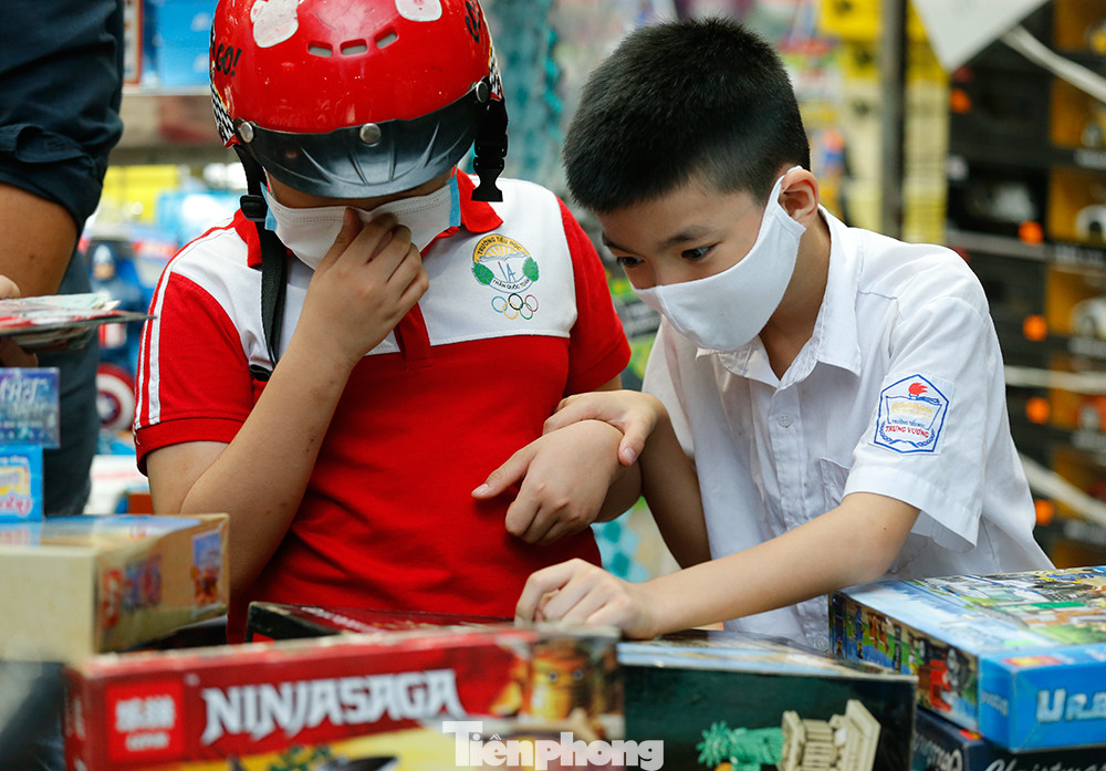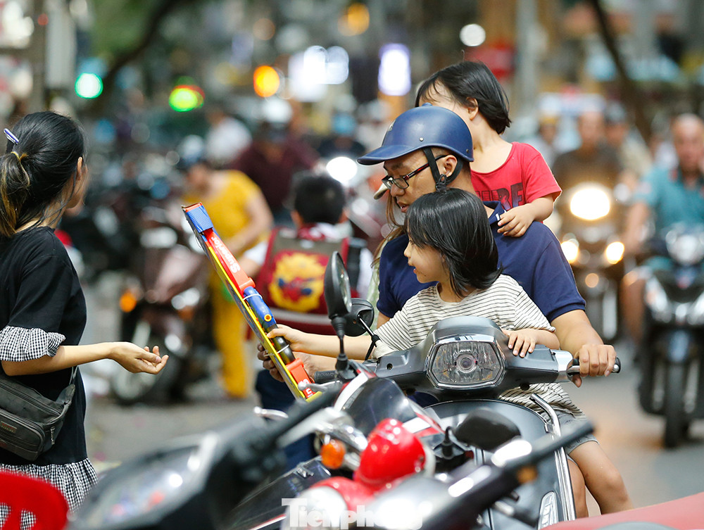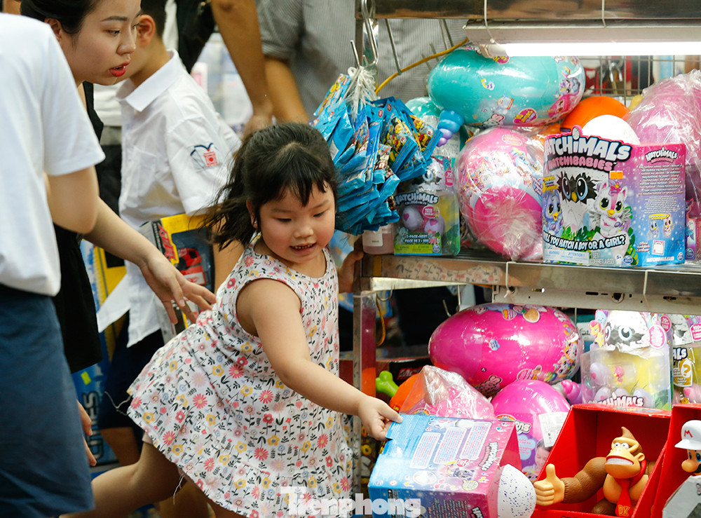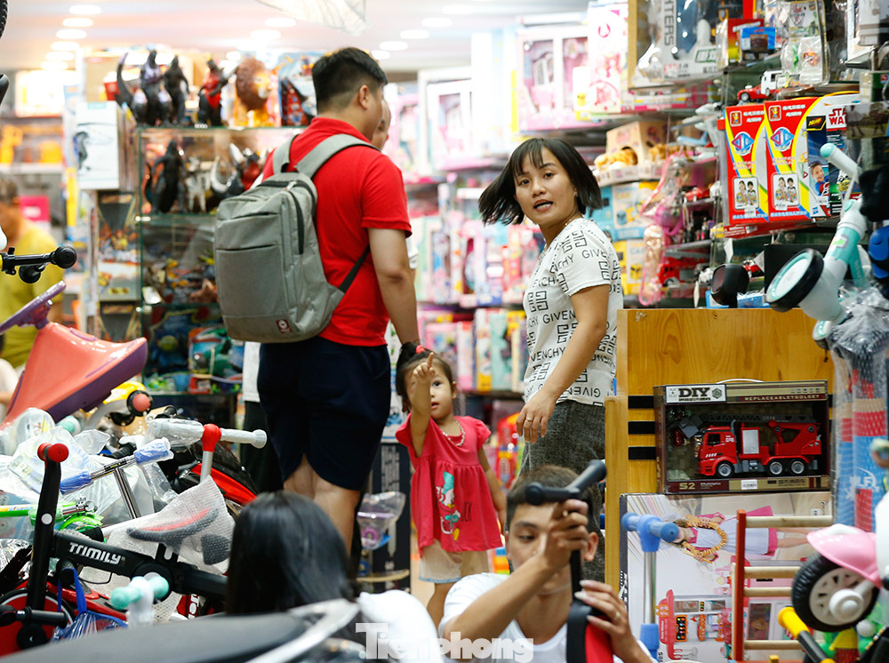 Phụ huynh tranh thủ đưa con đi mua đồ chơi trên Bờ hồ chiều ngày 1/6