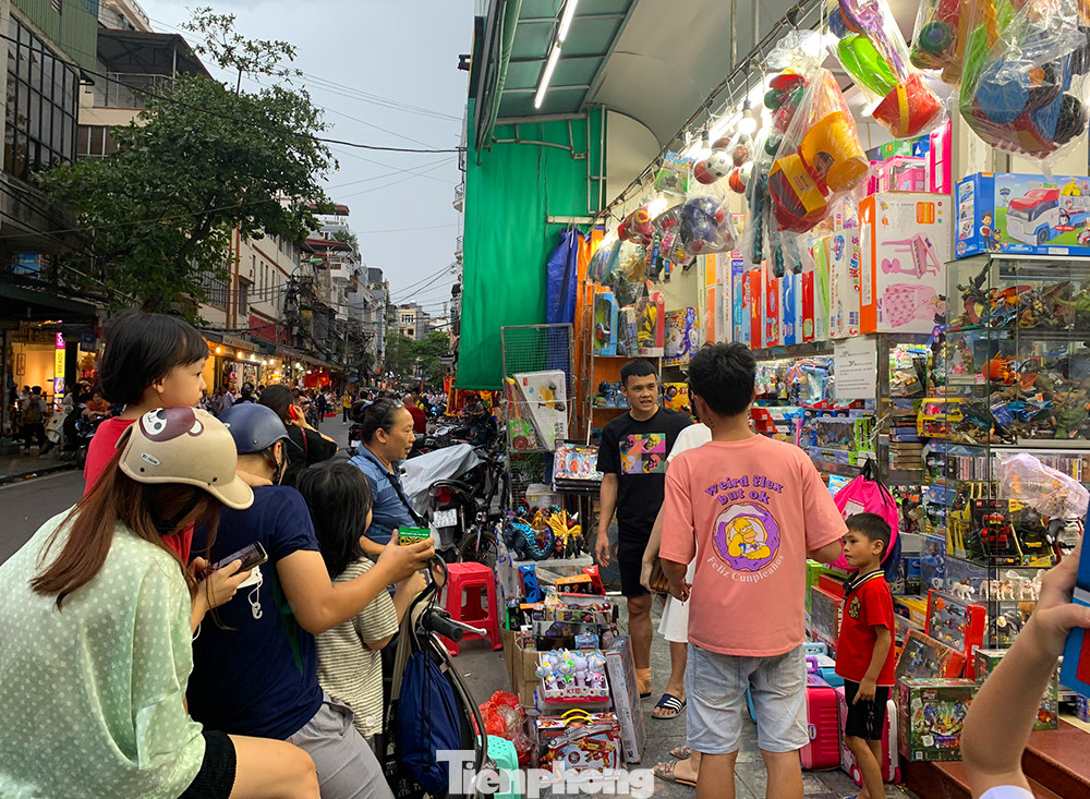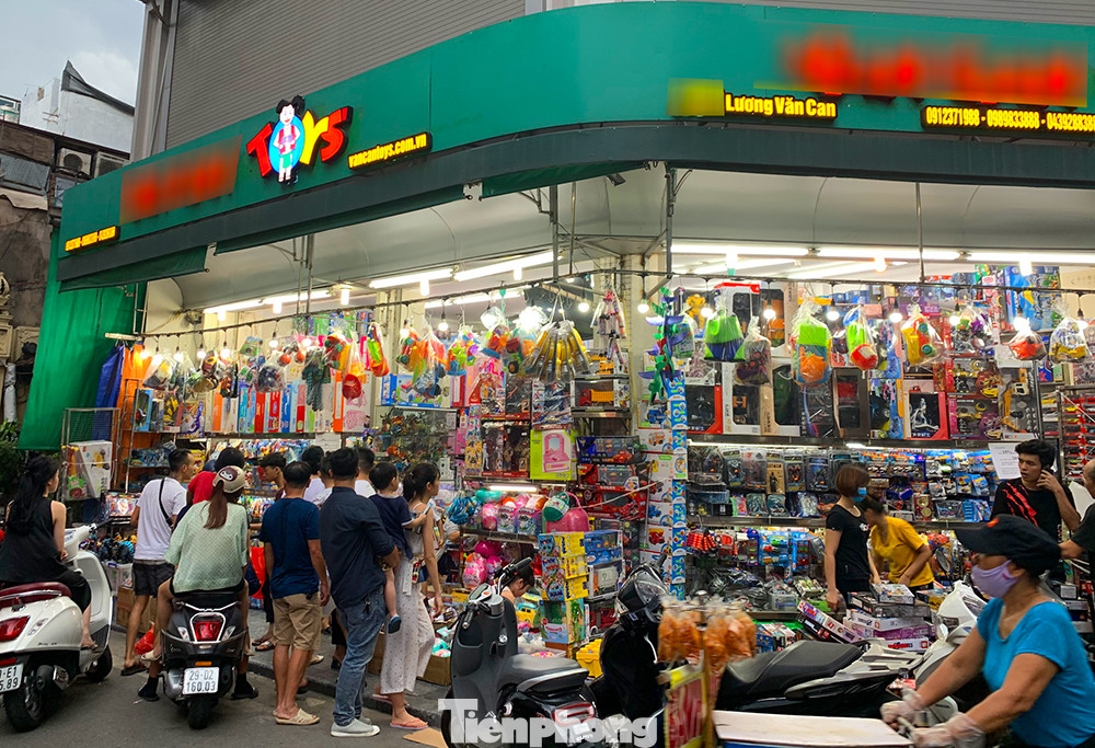 Một cửa hàng trên phố Lương Văn Can rất đông bậc phụ huynh đưa con đến lựa chọn mua sắm đồ chơi cho con