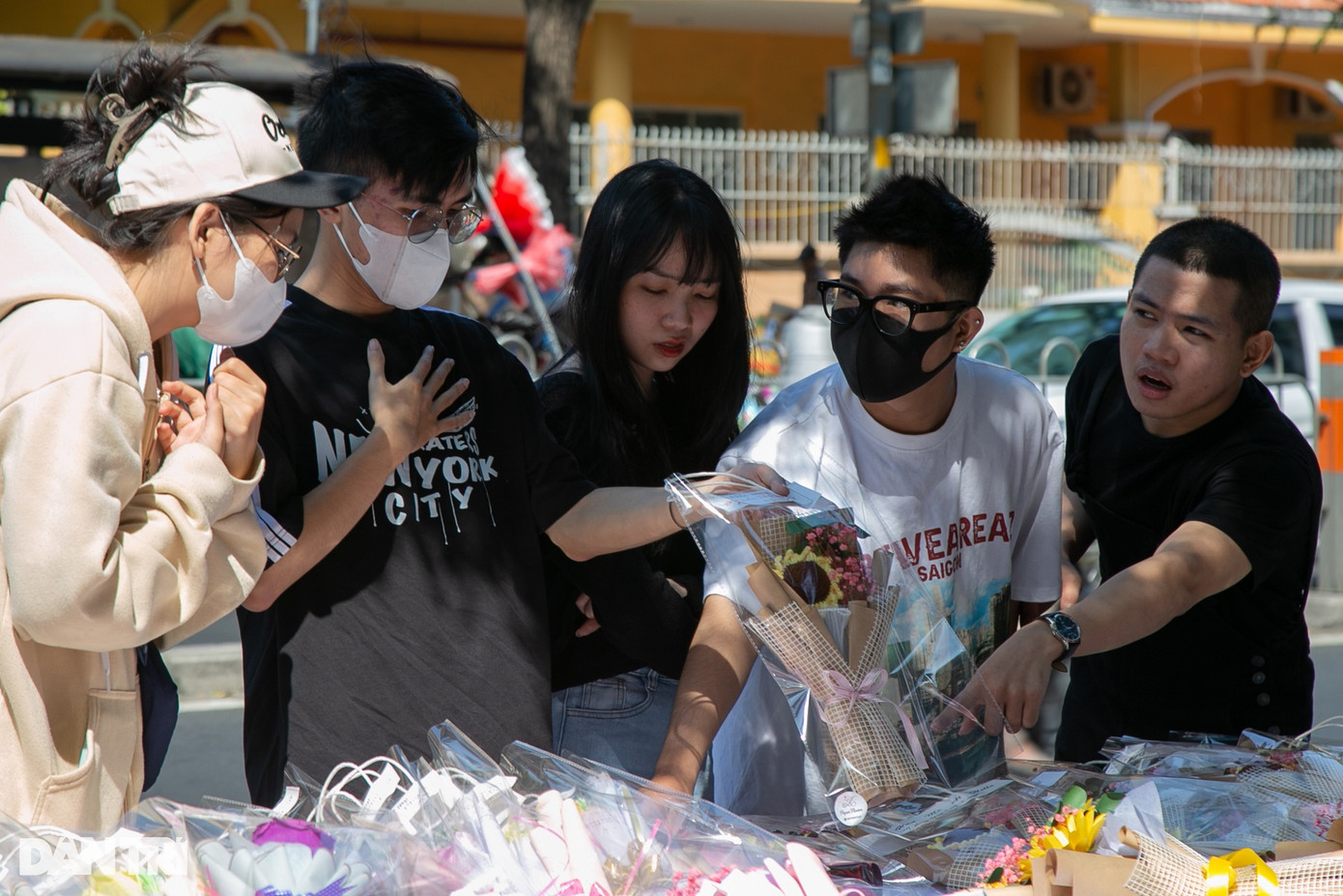 Cách đó không xa là con đường Nguyễn Văn Cừ (quận 5), nơi tập trung nhiều sạp hoa ở TPHCM. Gần chỗ lấy hoa và các trường đại học, trung tâm thương mại, thuận lợi cho việc mua bán hoa kỷ niệm nên hằng năm, nhiều tiểu thương chọn con đường này để bày bán. Hai bên đường, những bục cây được họ tận dụng làm chỗ trưng bày hoa.