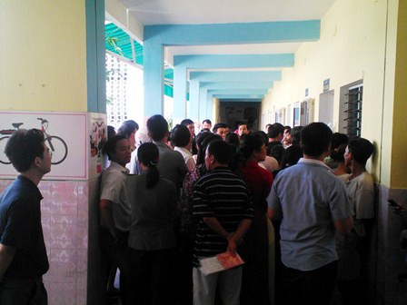 Theo đó, sáng 5/5 là thời điểm mà Trường Mầm non Hoa Mai sẽ phát đơn chiêu sinh các cháu năm học 2014-2015 với số lượng tổng 163 gồm: các cháu sinh năm 2012 (90 cháu), các cháu sinh tháng 1,2,3 năm 2013 (48 cháu) và các cháu sinh năm 2010 (25 cháu). Do trường chiêu sinh nội tuyến và ngoại tuyến - số lượng ít nên có rất đông phụ huynh đến sớm với mong muốn được xếp thứ tự đầu, nhằm có nhiều ưu tiên.