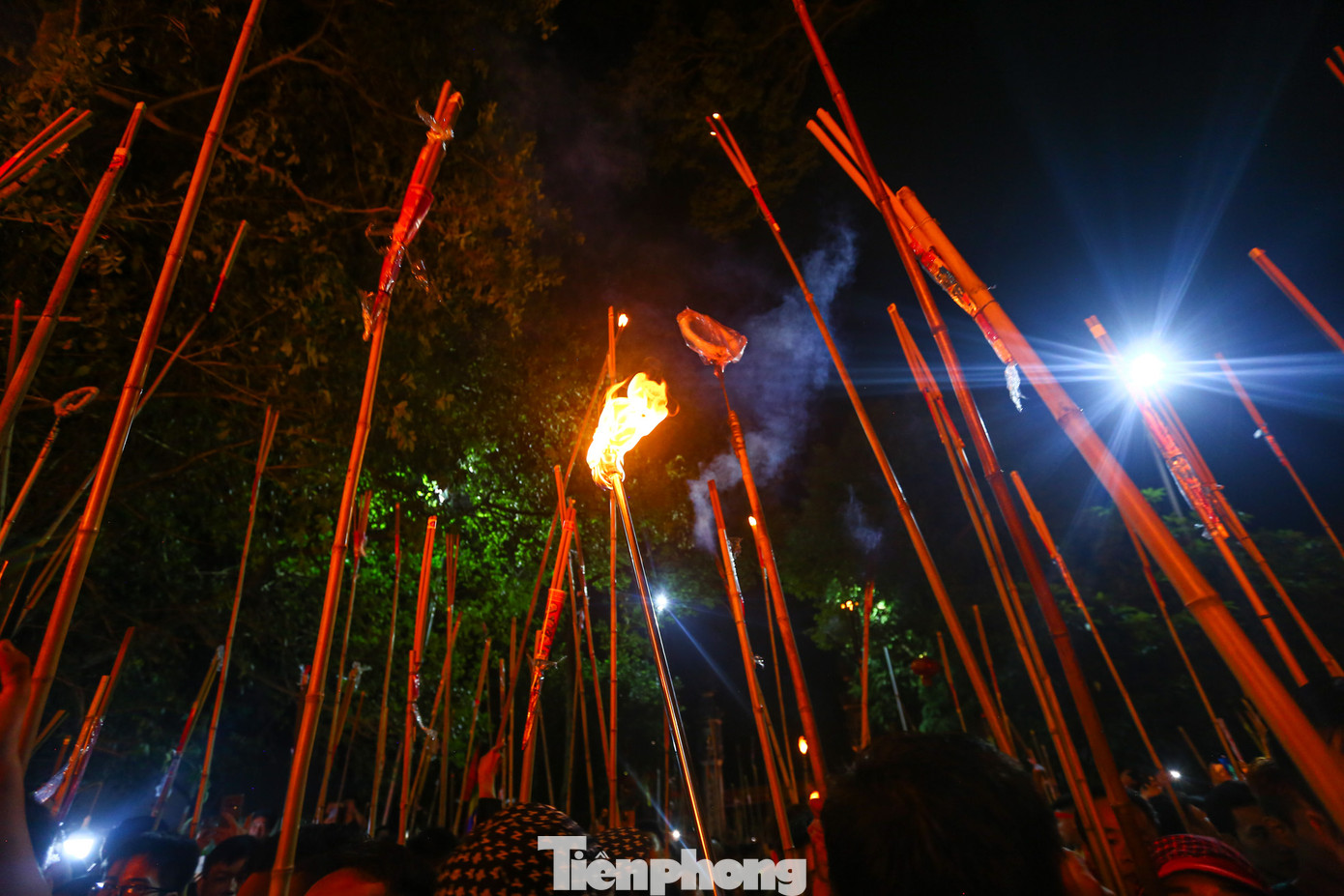TPO - Khoảng 23h30 ngày 21/2 (12 tháng Giêng Âm lịch), sau khi lửa thiêng bùng lên tại khu lăng mộ Chu Bá tại Lễ hội cổ truyền làng Văn Nội (phường Phú Lương, Hà Đông, Hà Nội), hàng ngàn người dùng sào tre để rước lửa thiêng lấy may về thắp lên ban thờ tổ tiên.
