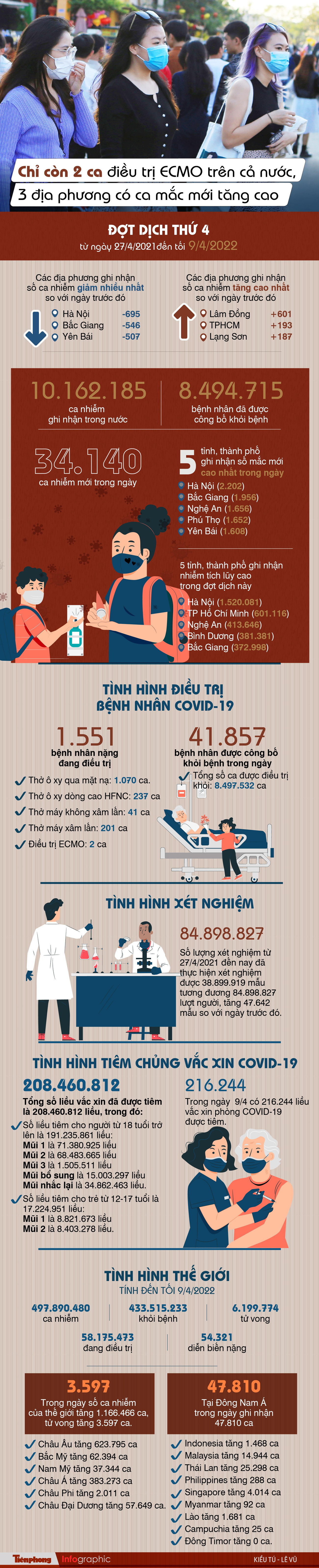 Google News Chỉ còn 2 ca điều trị ECMO trên cả nước, 3 địa phương có ca mắc mới tăng cao