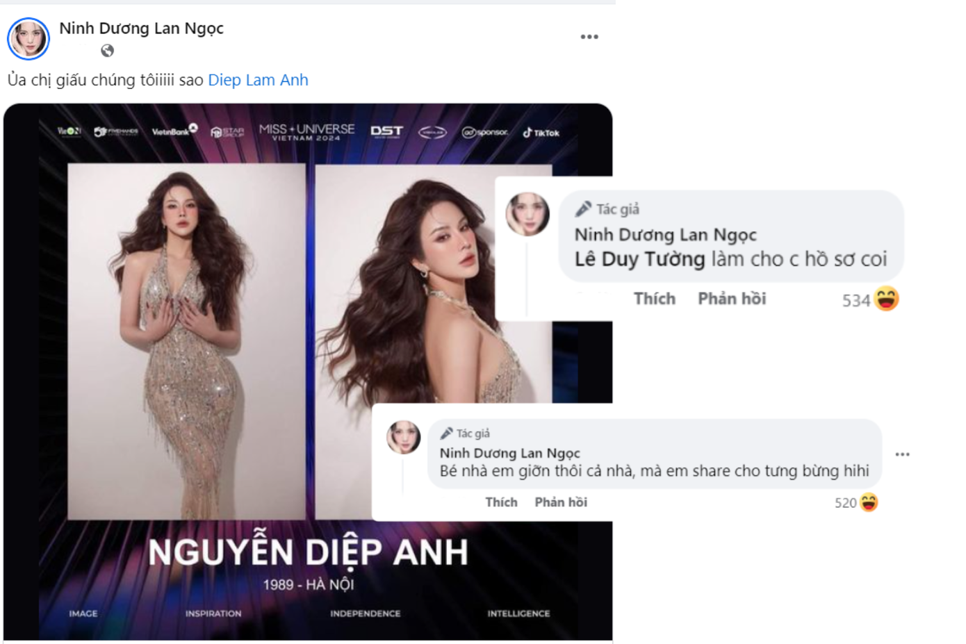 Sau đó, cô em gái LUNAS - "chị đẹp" Ninh Dương Lan Ngọc cũng nhanh chóng theo đàn chị "nhập cuộc", đề nghị quản lý mau làm hồ sơ cho cô đi thi Hoa hậu.