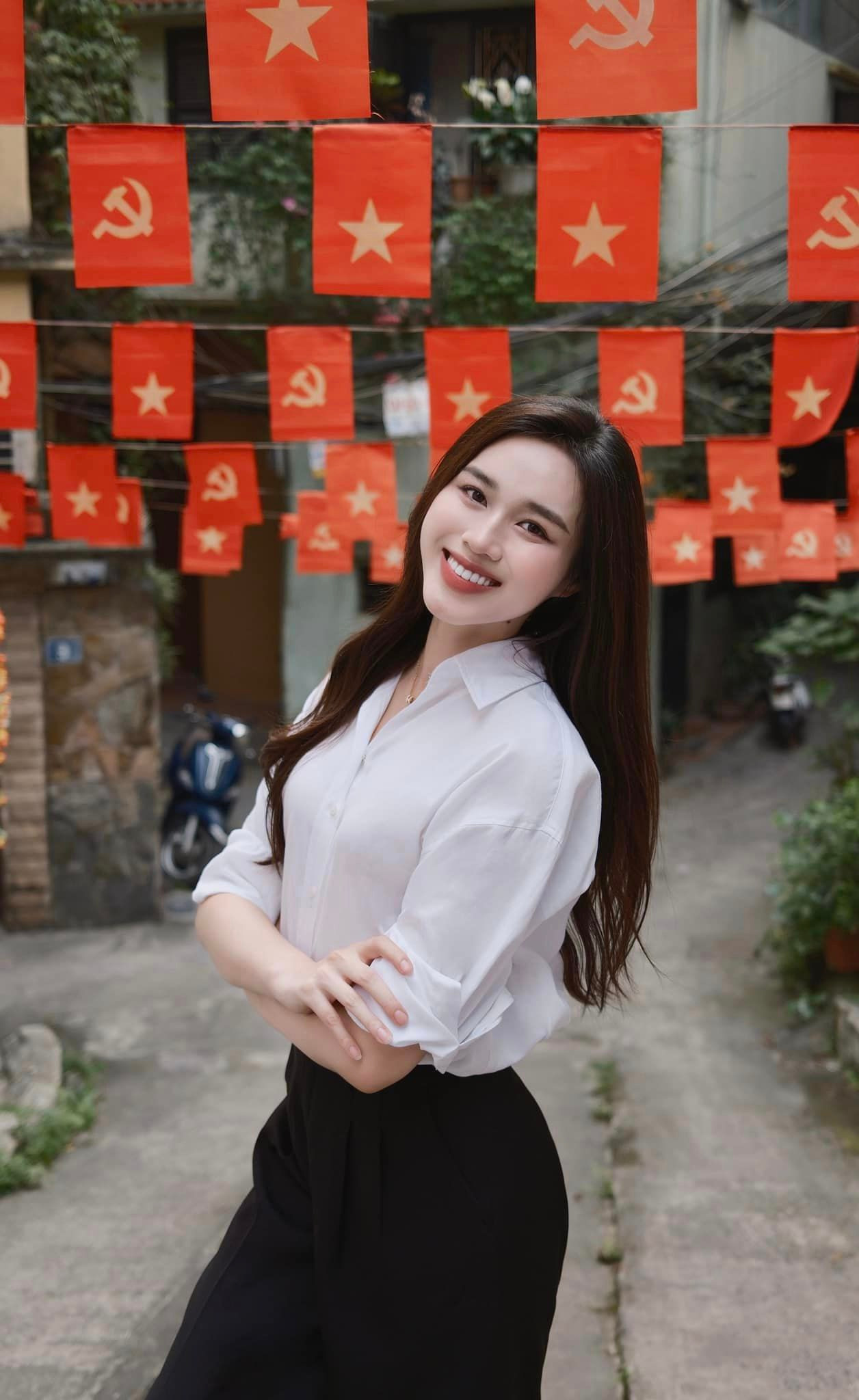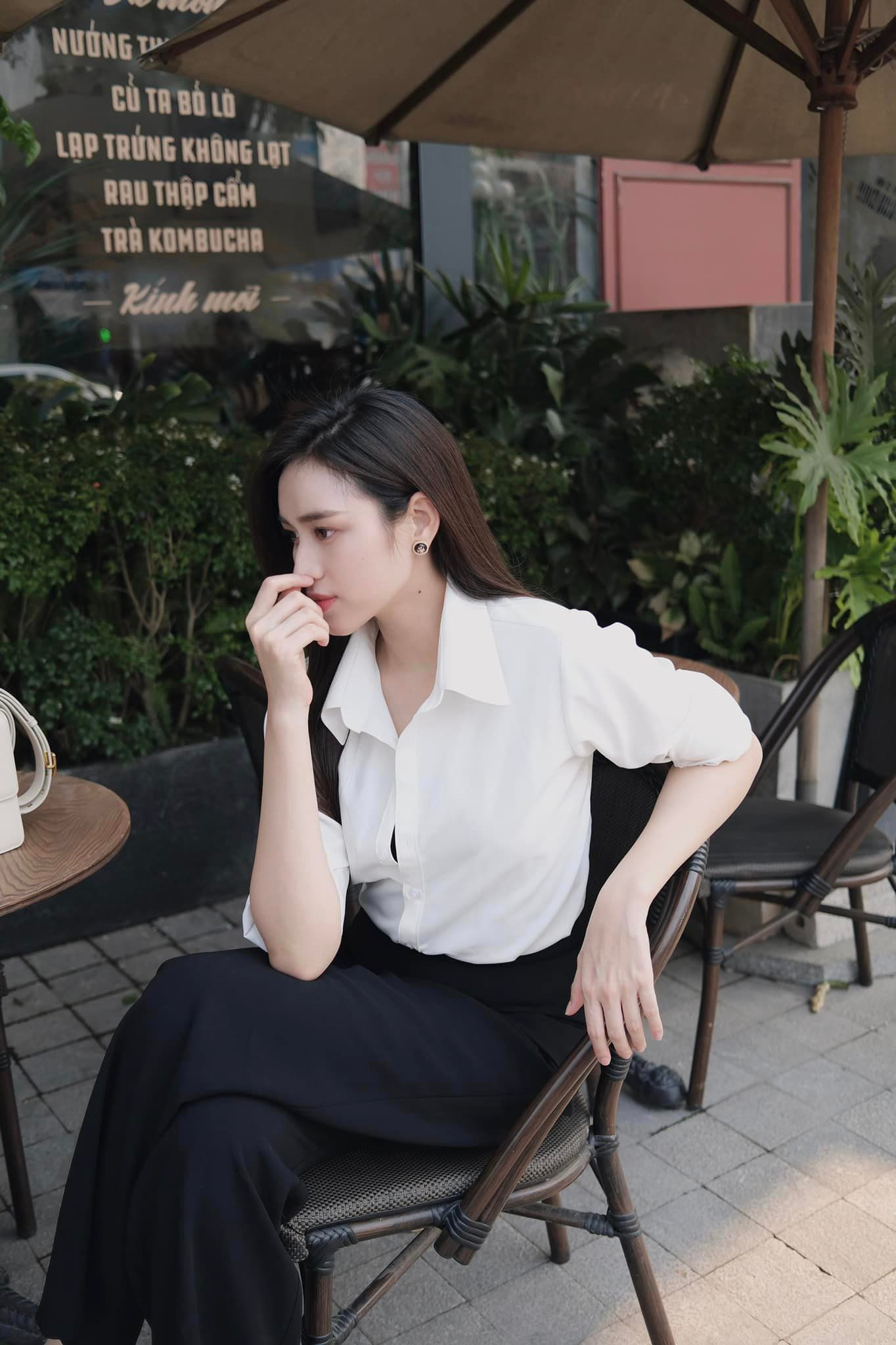 Từ khi trở thành doanh nhân, nàng hậu rất yêu thích style quần ống rộng kèm áo sơ mi với tông màu đen trắng, vừa thanh lịch vừa không bao giờ lỗi mốt. Hoa hậu Đỗ Thị Hà cũng tối giản phụ kiện, trang điểm nhẹ nhàng mỗi khi chọn phong cách này.