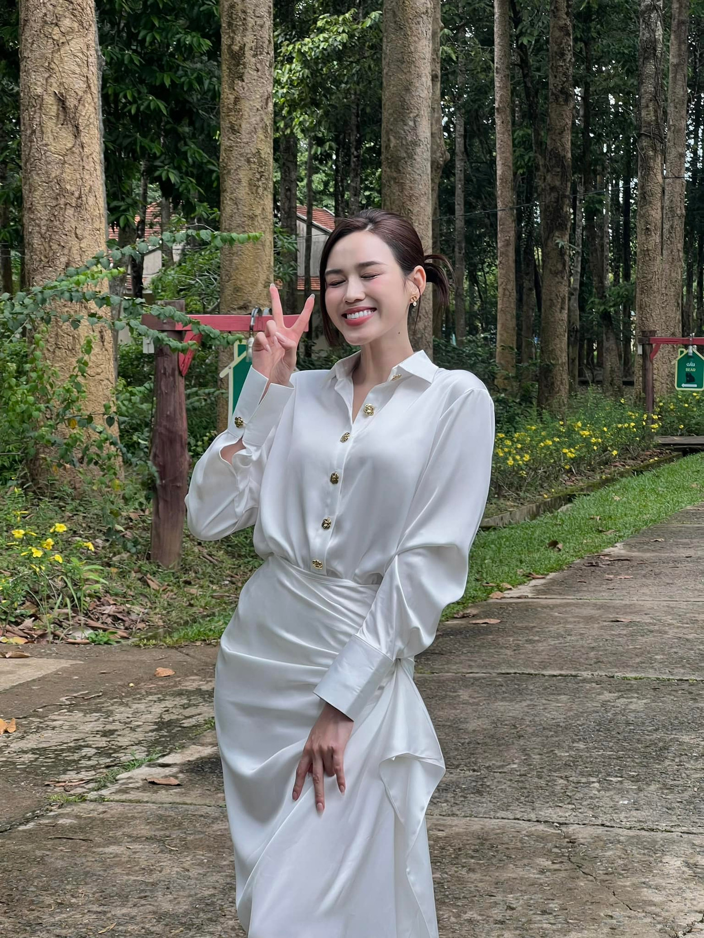 Hơn một năm qua, Hoa hậu Đỗ Thị Hà càng thêm bận rộn khi ngoài lịch trình hoạt động nghệ thuật, cô còn làm giám đốc điều hành của một trung tâm sắc đẹp. Phong cách ăn mặc của nàng hậu vì thế cũng trưởng thành hơn với những set đồ kín đáo, tối giản nhưng vẫn rất quyền lực.