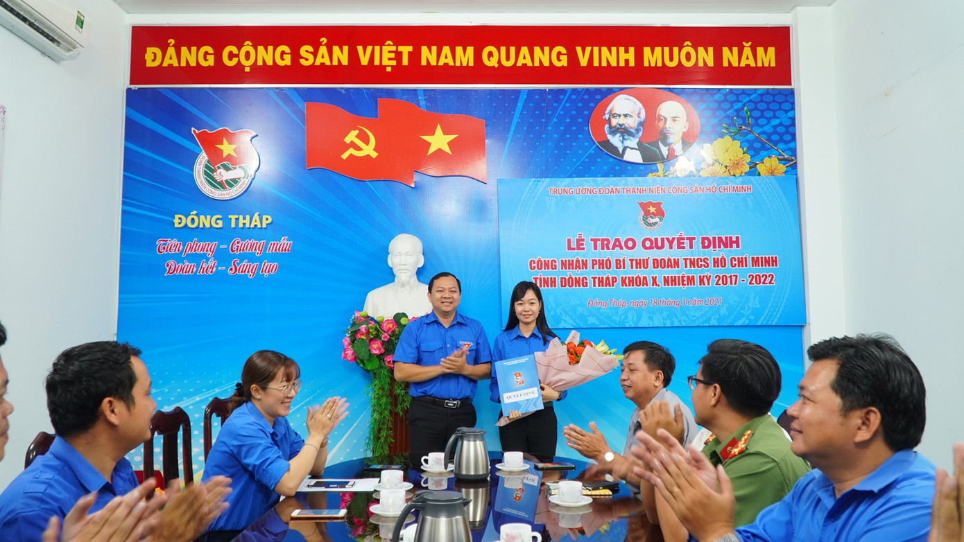 Căn cứ Quyết định số: 1723-QĐ/TWĐTN-BTC ngày 25/02/2021 của Ban Bí thư Trung ương Đoàn TNCS Hồ Chí Minh về việc công nhận Phó Bí thư Tỉnh đoàn Đồng Tháp khóa X, nhiệm kỳ 2017 – 2022, anh Huỳnh Minh Thức, Bí thư Tỉnh đoàn thay mặt Ban Thường vụ Tỉnh đoàn trao quyết định công nhận Phó Bí thư Tỉnh đoàn Đồng Tháp khóa X, nhiệm kỳ 2017 – 2022 cho chị Nguyễn Thị Thúy Lam.