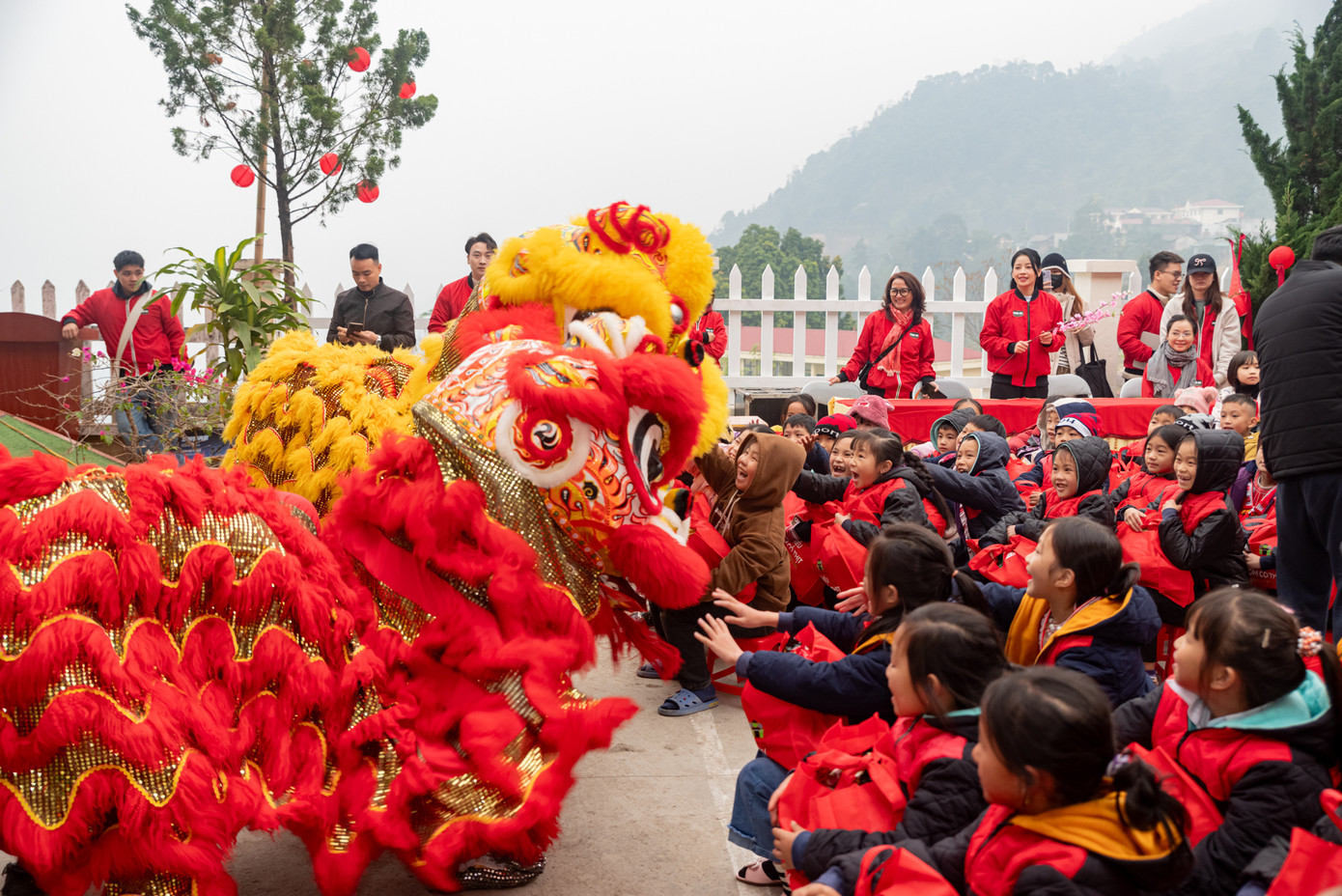 Không khí Tết ngập tràn sân trường như hội với hoa đào, câu đối, các tiết mục văn nghệ, múa lân, nhảy sạp, nhận quà, nhận lì xì, và đặc biệt hơn cả là hoạt động Chảo thịt kho tết khổng lồ thơm lừng,nóng hổi được thực hiện bởi các nghệ nhân, đầu bếp chuyên nghiệp. Một không khí Tết ấn tượng, một niềm vui tận hưởng chưa từng có với các trò vùng cao, nơi còn nhiều điều khó khăn.
